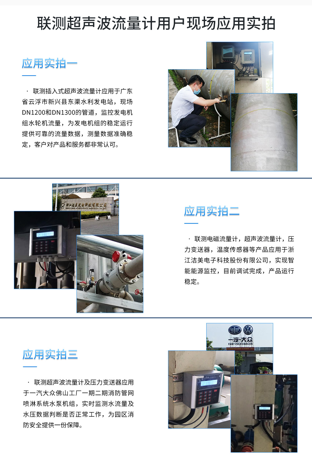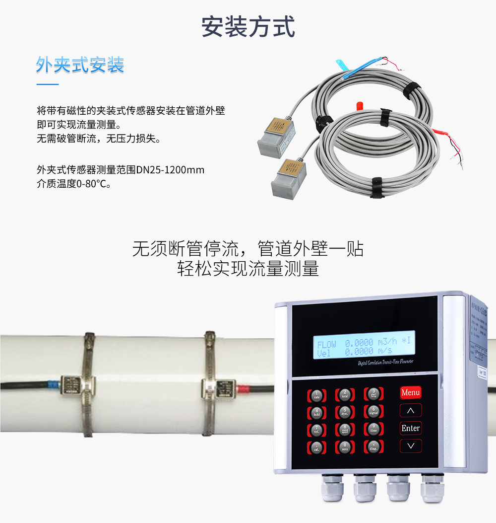 聯(lián)測(cè)超聲波流量計(jì)適合相對(duì)純凈液體流量的管外測(cè)量,尤其是在水流量測(cè)量、在工業(yè)循環(huán)水、空調(diào)制冷循環(huán)水、原水、高壓水、自來水,污水排放管等廣泛應(yīng)用。