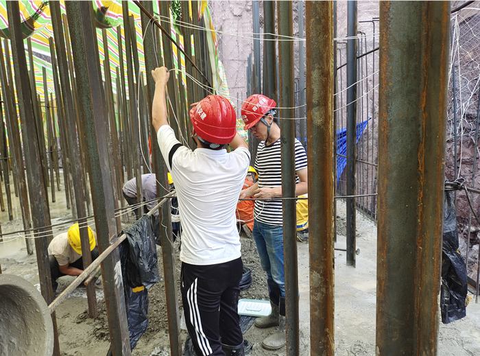此次應用于現場的儀表為里聯測新款無紙記錄儀及溫度傳感器,現場主要通過溫度傳感器采集混凝土溫度數據,結合記錄儀溫度曲線的變化,獲得凝固過程中,應力隨溫度變化的規律,從而減少混凝土因溫度應力變化而而導致溫度裂縫,提高工程項目整體的結構性和耐久性。