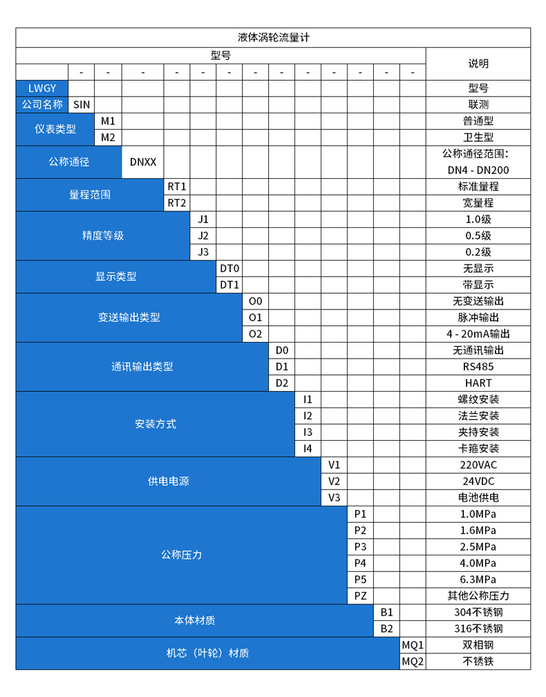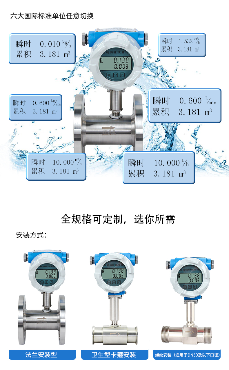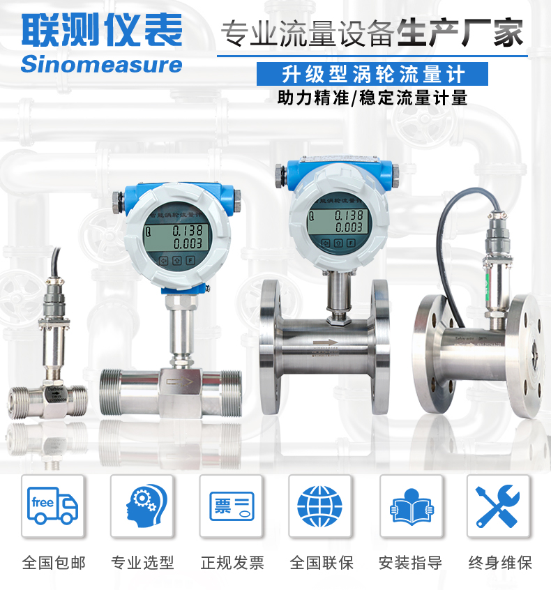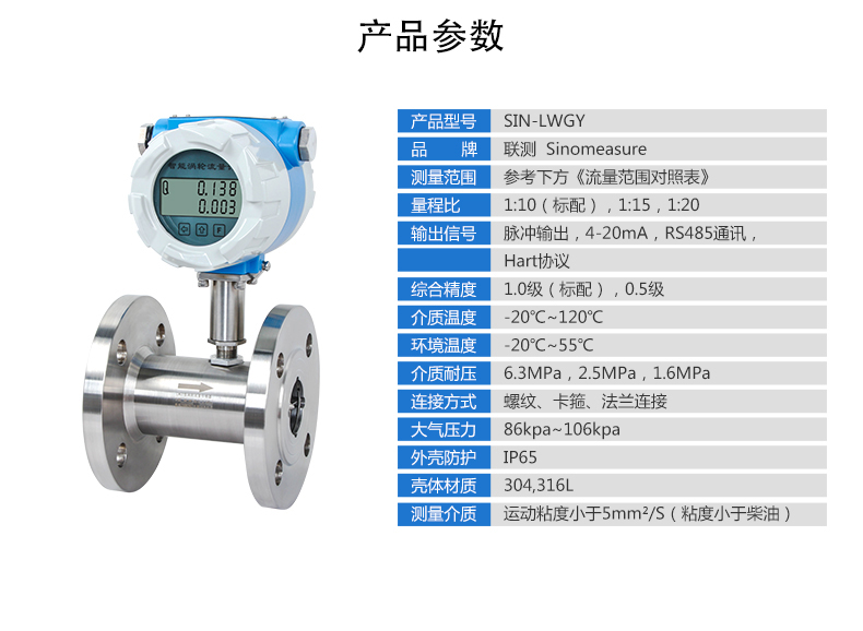 聯(lián)測(cè)LWGY-SIN液體渦輪流量計(jì)是一種速度式儀表,它具有準(zhǔn)確度高、重復(fù)性好、結(jié)構(gòu)簡(jiǎn)單、壓力損失小、維修方便等優(yōu)點(diǎn),用于測(cè)量封閉管道中低粘度液體的體積流量。