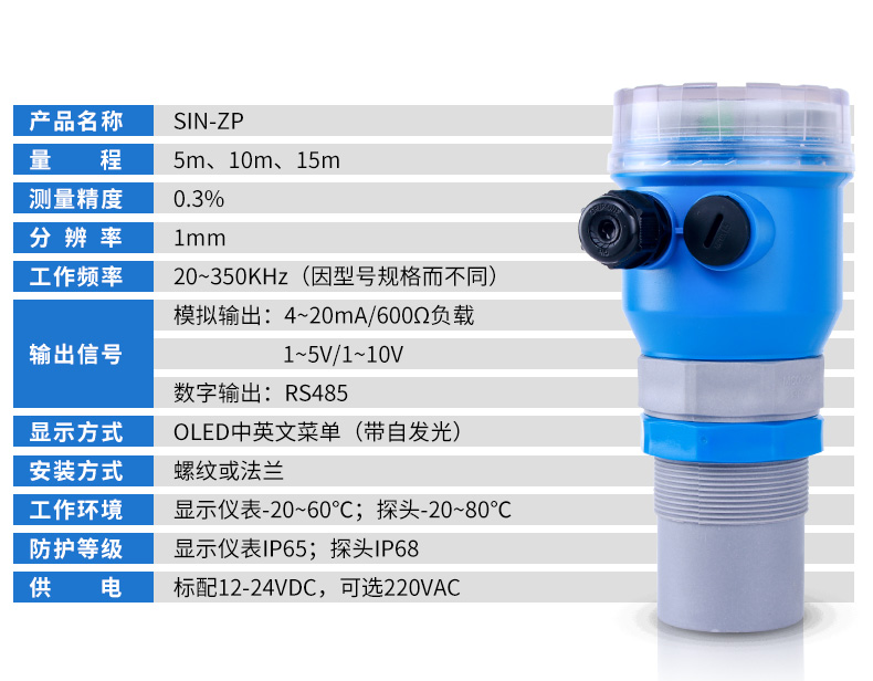 聯(lián)測SIN-ZP超聲波液位計,適用場合:污水處理 窨井 工廠水箱 罐體 市政工程 自來水 水利水電 鋼鐵 煤礦 電力 石油化工 城市內(nèi)河湖泊、交通以及食品加工等高精度要求行業(yè)。